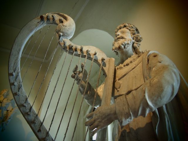 資料室みたいなところで竪琴のおじちゃん、ハロー!